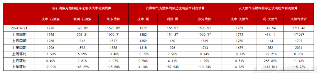 以石油焦和煤制气为燃料的玻璃利润仍有一定保障,但总体下降,而以天然气为燃料的生产从盈利转为亏损,亏损幅度显著增加。