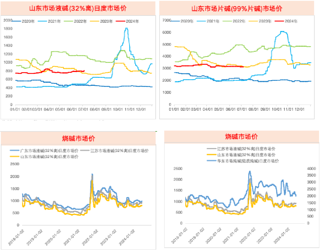 2024年上半年,轻碱库存的累积更为明显,而重碱的需求仍然较为强劲。轻碱库存自2月份以来快速上升,由于上半年多数轻碱下游需求减弱,贸易商资金运转速度下降,不再愿意拿货。下半年轻碱可能会有需求旺季,但是整体市场消费疲软,拉动受限。重碱需求受浮法玻璃和光伏玻璃支撑,下半年可能也会面临一些不利因素,比如浮法玻璃价格下降和光伏玻璃库存过剩等问题,影响重碱需求