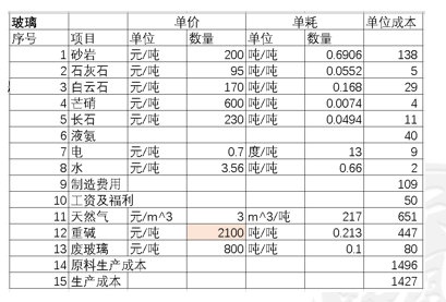 如果不考虑废玻璃,成本在1500元/吨附近。
