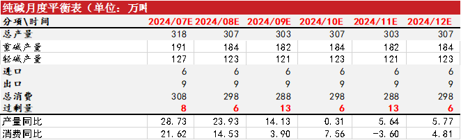 上半年整个纯碱持续累库,下半年难以好转,几乎每月还是累库。