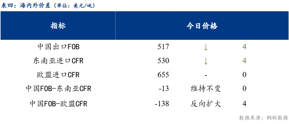 从区域价差来看,华东与东北价差120元/吨,较上一交易日正向缩小10元/吨;华东与华南价差-10元/吨,较上一交易日维持不变;华南与华北价差80元/吨,较上一交易日正向缩小10元/吨。