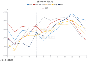 1.全球大豆维持宽松预期,2024/25年度美国大豆产量预测为44.50亿蒲, 巴西大豆产量仅下调100万吨至1.53亿吨,依旧是巴西历史第二高的大豆产量水平,阿根廷大豆产量为5000万吨, 南美大豆的收割工作已经结束,因此2023/24年度南美大豆丰产格局基本确定。