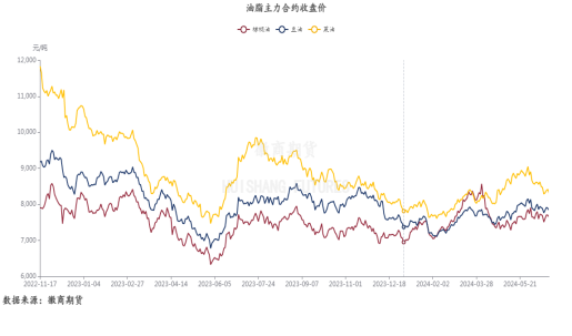 1、2月份受南美大豆丰产逐步兑现,美豆破位下行,导致豆油带领油脂连续走弱。3月初吉隆坡棕榈油会议对全球棕榈油价格全面看多预测开启棕榈油阶段性上涨,且斋月导致棕榈油产地复产节点延后,中国棕榈油受进口利润倒挂影响,买船依然偏低,存在去库预期,而二季度菜籽与菜油进口量充足,菜油供应宽松,另外3月底美农种植面积报告提前奠定供应宽松基调,国内进口大豆将迎来季节性到港高峰,油厂压榨预计增加,豆油供应量存在增长预期,最终由棕榈油领涨油脂, 豆棕油主力合约价差持续走缩至-600元/吨。4月份棕榈油进入季节性复产,开始强弱转换,棕榈油与豆油、菜油价差出现修复。4月下旬欧盟菜籽霜冻与巴西南部暴雨,菜籽、大豆减产担忧提振豆菜油,豆棕、菜棕价差继续修复,不过新季北美大豆与加菜籽播种顺利,产区降雨正常,土壤墒情优异,棕榈油进入增产累库周期的预期未变,油脂油料市场缺乏有效的驱动,部分资金快速离场,引发油脂回调整理。