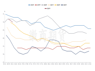6-8月进口大豆到港高峰,现阶段主要从巴西进口,而巴西大豆水分高易变质储存时间较短,油厂在到港压力下保持较高开机率,6月以来全国油厂开机率保持在55%-65%的同期偏高水平,豆油供应持续增加,截至6月18日,全国豆油库存为83.4万吨,较上月同比增加10%,三季度豆油库存继续累库。