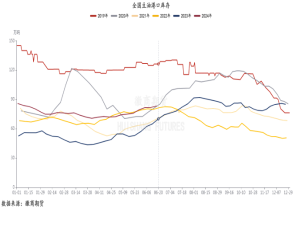 图10:全国豆油库存(万吨) | 图11:全国棕榈油商业库存(万吨) |