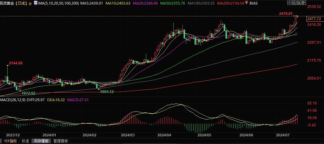 北京时间7月17日9:50,现货黄金报2477.76美元/盎司