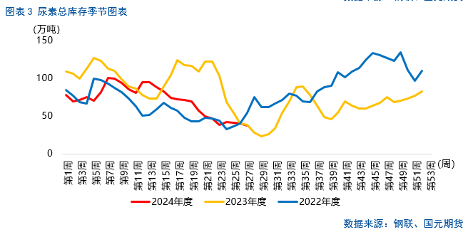 尿素库存居于低位。截至上周,尿素总库存在37.2万吨,居于近六年同期低位。从结构上看,尿素企业库存持续刷今年以来的新低,从季节性看目前尿素厂库仍处于筑底阶段。截至7月3日,国内尿素企业库存总量为23.10万吨,较上一统计周期减少2.46万吨。港口库存延续低位,并呈现下滑。截至7月4日,中国主要港口尿素总库存统计 14.1 万吨,环比下滑2.76%;其中,港口大颗粒尿素库存量 8.58 万吨,环比下滑4.35%;小颗粒库存量 5.52 万吨, 环比下滑0.18%。