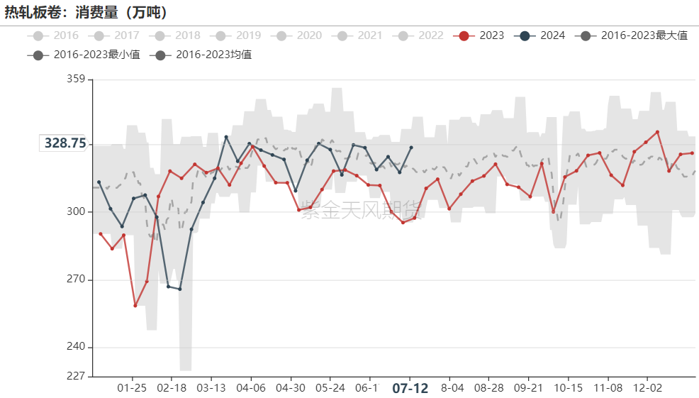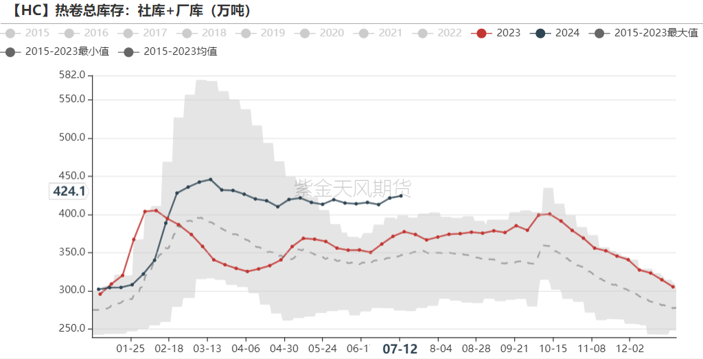 铁水本周钢联公布247样本铁水产量238.29万吨,环比-1.03万吨,7月日均铁水238.8万吨。