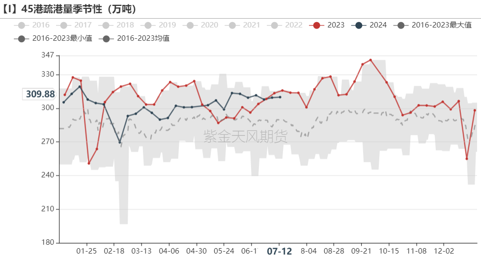疏港:上周45港日均疏港量310万吨环比增1万吨/日