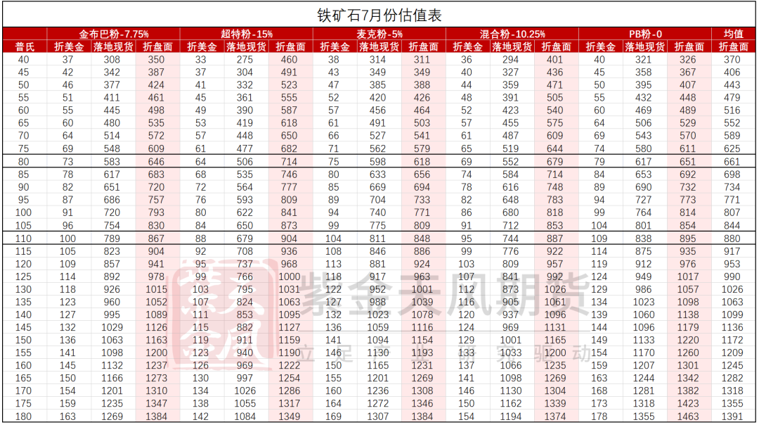 折扣&汇率7月普氏62指数均值为110,对应盘面估值约为848。