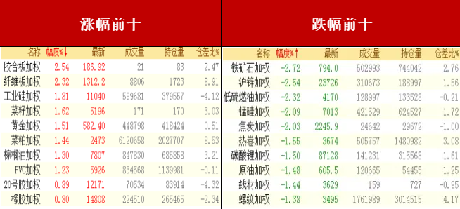 贵金属涨跌不一,全球地缘政治风险提升了各国央行对黄金兴趣,购买的黄金量是自1960年代后期以来的最高水平,近期投资者普遍存在对黄金有逢低买入的兴趣,这可能是市场迅速反弹的原因之一,沪金涨逾1%;胶合板涨近3%。