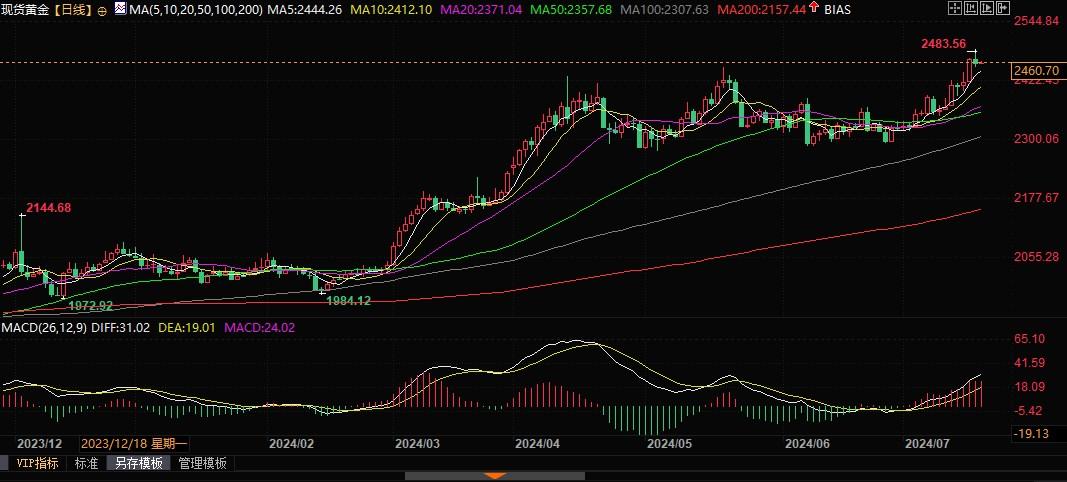 北京时间7月18日10:26,现货黄金报2460.70美元/盎司