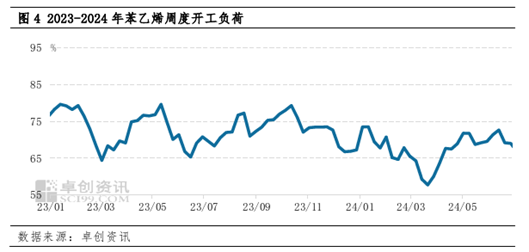 季度均价变化显示,2024年二季度苯乙烯涨幅不及主力上下游产品涨幅。原料方面,纯苯价格持续上涨,先是主港累库不及预期,之后进口货源补充有限且国内装置又进入到集中检修期,主港库存持续去库,支撑价格环比上涨9.73%,给予苯乙烯上涨支撑;国际油价先跌后涨,下跌自4月上旬持续至6月初,阶段性拖拽苯乙烯价格下行;乙烯价格环比下跌1.58%,对苯乙烯影响较为有限。下游产品来看,主力下游三大S跟随原料苯乙烯上涨,EPS、ABS、PS季度环比涨幅分别在4.81%、9.30%和12.23%,整体涨幅大于苯乙烯涨幅,受上半年终端生产旺季支撑,下游表现强于预期。