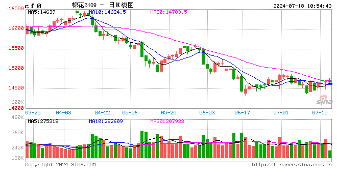洲际交易所(ICE)棉花期货周三走高,受美元下跌及及谷物市场涨势等推动。交投最活跃的ICE 12月期棉收涨0.70美分或0.98%,结算价报72.07美分/磅。美国农业部发布全球棉花供需7月报告,报告显示,2024/25年度全球棉花产量预测值为2616.8万吨,调增22.9万吨。全球消费调增5.4万吨至2551.5万吨,全球期末库存调减18.7万吨至1799.1万吨,2024/25年度全球棉花产量调增幅度大于消费,数据报告利空棉市。国内市场,当前棉花去库维持缓慢节奏,国产棉供应仍充足。另外港口进口棉花库存继续小降,库存库容紧张程度稍有缓解,但库存依旧偏高。下游需求未见明显好转,企业补库意愿不强,产成品累库持续,预计后市郑棉价格弱势震荡格局。