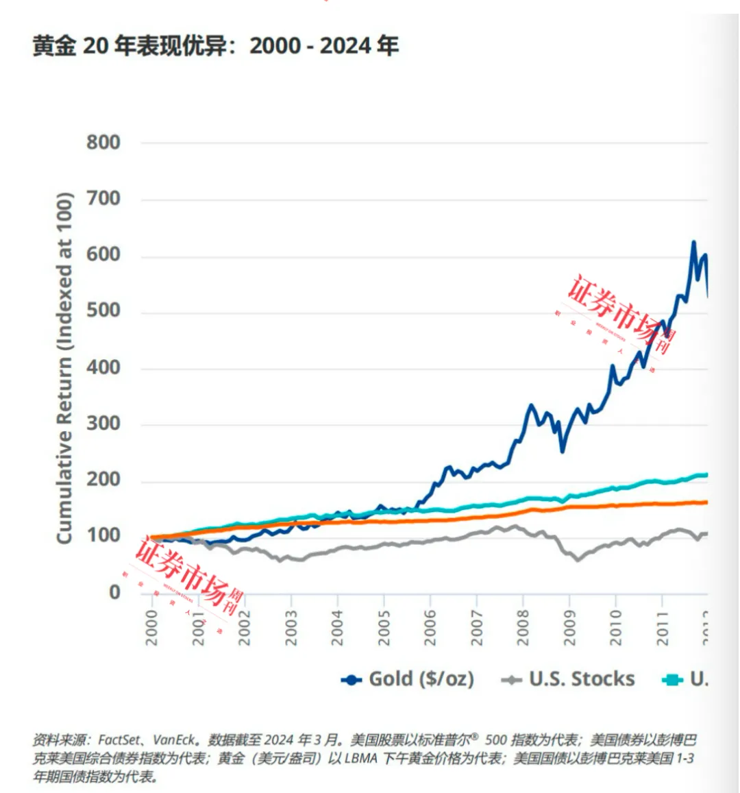 从长远来看,投资者应该预期黄金将继续充当对冲更广泛的市场波动和不确定性的工具。自2008年以来,在最显著的市场危机中,黄金的表现都优于美国股票和美国国债。这反映了黄金作为对冲金融风险和在不确定时期避风港的作用。VanEck的一些专家表示,由于美元储备地位可能下降,新兴市场央行的黄金持有量继续增加,黄金的前景可能会变得更加强劲。此外,他们认为,随着发达市场央行开始成熟,这种趋势可能会在发达市场央行中得到复制。