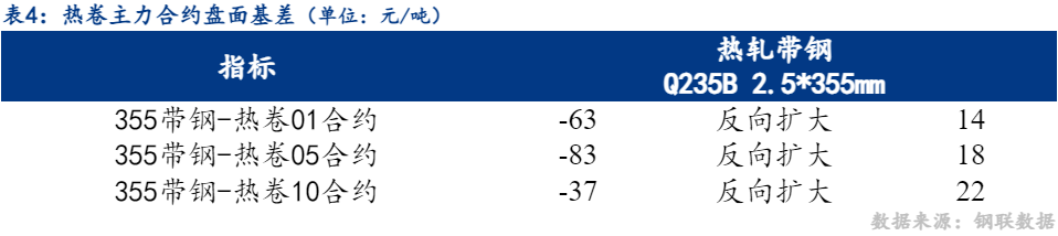 5日市场热卷10合约与355带钢价差反向扩大22元/吨,热卷05合约与355带钢价差反向扩大18元/吨。