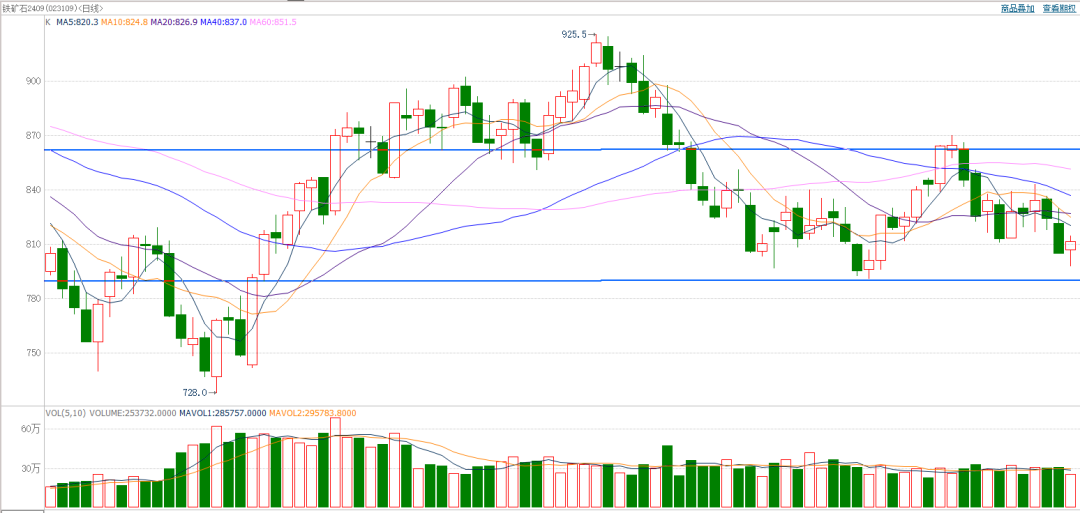 策略建议:铁矿整体仍为弱势,短期内建议空头思路操作为主,关注800附近支撑强度。策略7月16日收盘首次推荐。