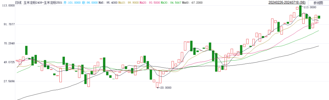 操作策略:多09空01玉米淀粉,为跨期套利交易策略,可适当关注。若二者差价下破70取消关注。