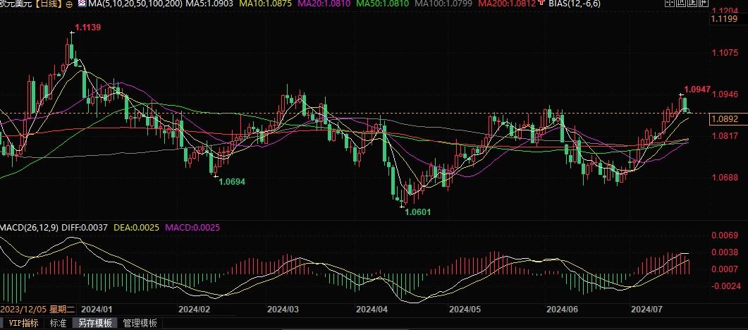 欧元兑美元日线图