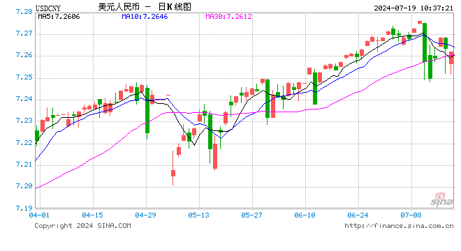 7月19日,人民币中间价报7.1315,下调30点,上一交易日中间价报7.1285。