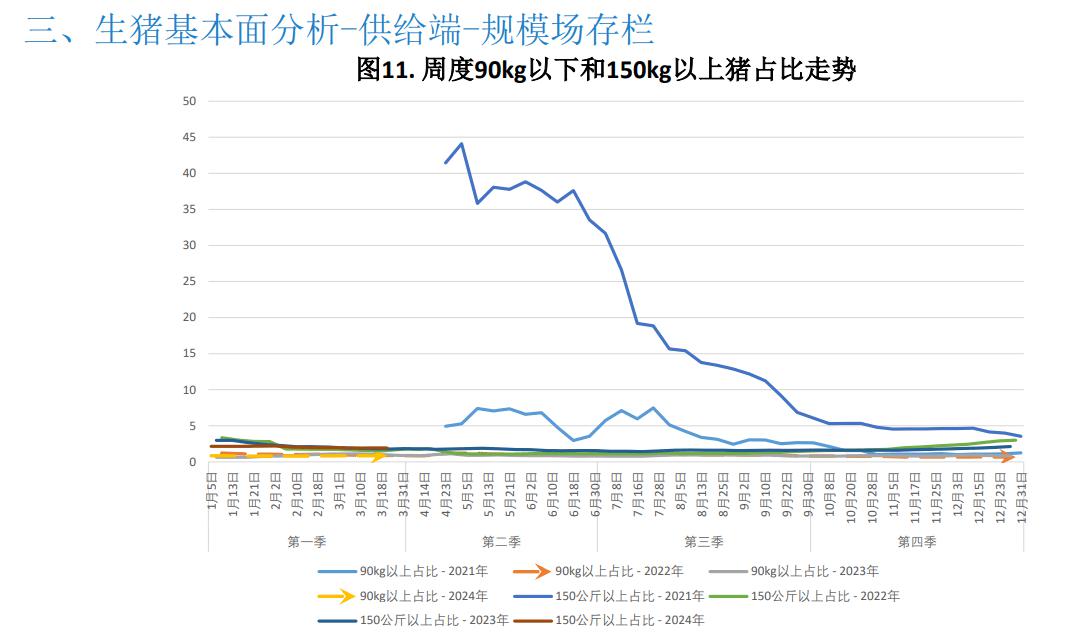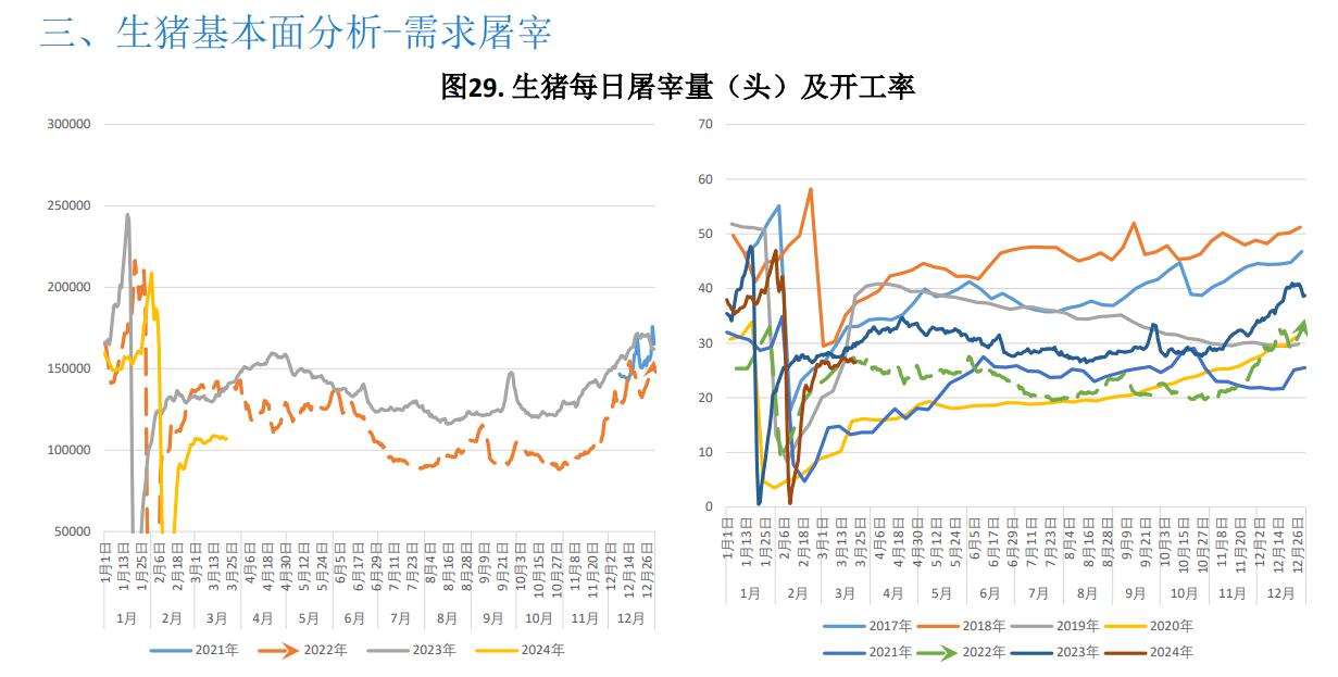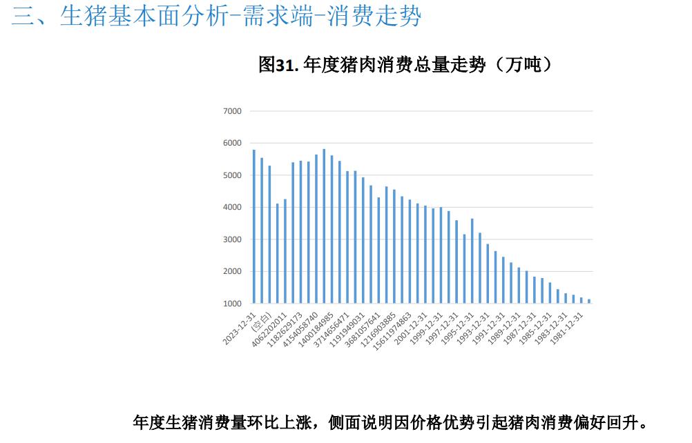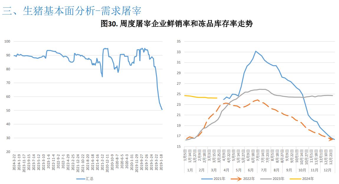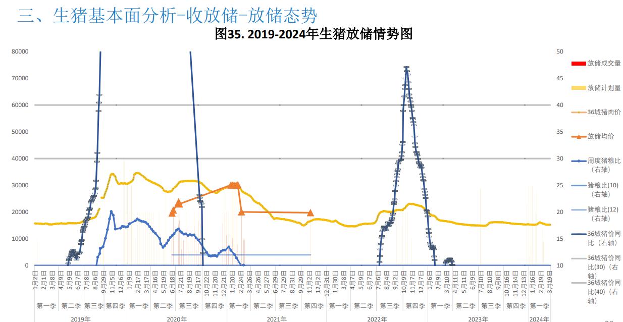 3.库存:截至3月31日,生猪存栏量40850万头,环比减少5.9%,同比减少5.2%;截至2024年5月底,能繁母猪存栏为3996万头,环比增加0.2%,同比减少6.2%;我的农产品(000061)调查重点企业能繁母猪5月底存栏量为487.59万头,环比增加0.38%;商品猪存栏3370.28万头,环比增加0.95%。偏空。