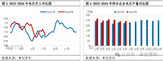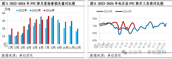 开工情况看虽然2024年多数时间段PVC开工高于去年同期,但震荡幅度较大,使得电石需求出现明显起伏,对价格形成影响。