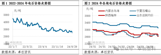 影响商品的主要因素包括宏观环境和商品自身基本面,对电石而言,2024年上半年价格波动的影响更多仍是来源于基本面,2023年4季度以来的电石炉陆续投产以及在产开工阶段性的提升使得供应高于去年同期,主力下游行业的集中检修使得需求出现阶段性下降,叠加原料兰炭等价格的下移,综合带来了电石阶段性的涨跌以及价格重心的连续下滑。