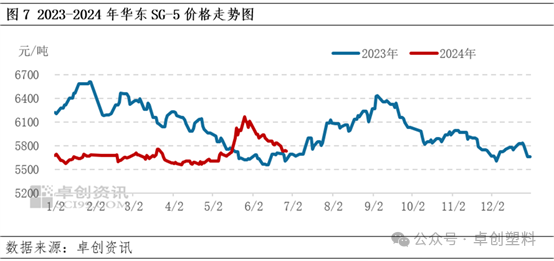 4月底至6月底,价格先涨后降再小涨后再度下滑,维持震荡状态,出厂价在2600-2800元/吨之间波动,价格下滑主要受制于PVC的集中检修,价格上涨则主要是电石开工下滑与PVC暂未集中检修之间的错配期。