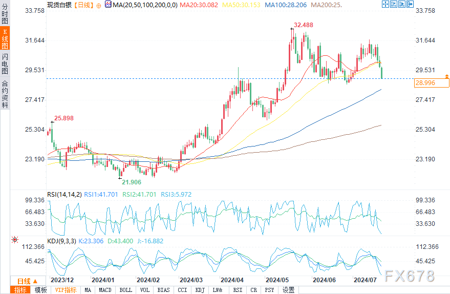 汇通财经APP讯——周五(7月19日)欧盘时段,现货白银价格周五大幅下跌,跌破50日移动均线30.19美元。该水平目前成为阻力位,卖家可能将近期底部锁定在28.57美元。