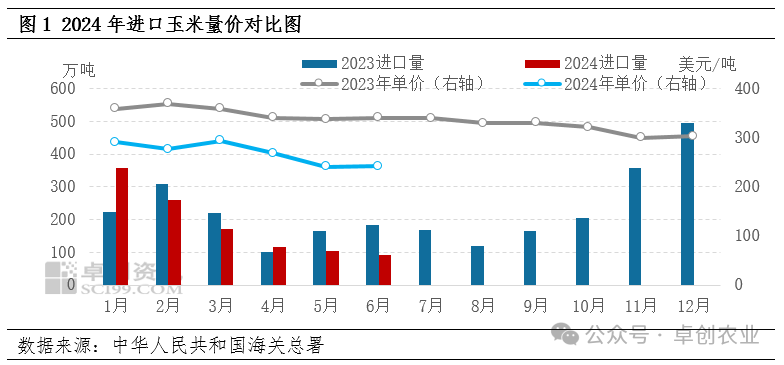 关于2024年6月份中国玉米进出口分析:进口价格优势提高进口量维持低位