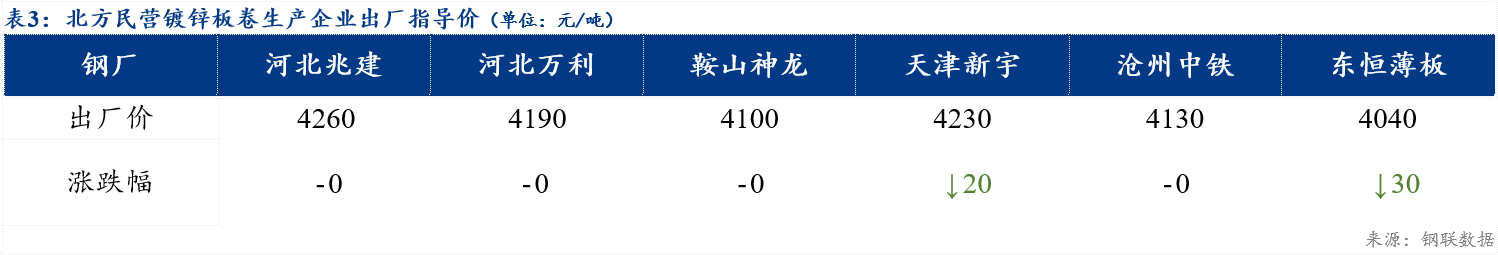 【钢厂调价】今日各地区民营镀锌钢厂出厂价格多数持稳,北方资源出厂价在4190元/吨左右。
