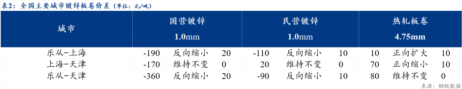 【区域价差】国营资源:乐从-上海价差倒挂190元/吨,上海-天津价差倒挂170元/吨,乐从-天津价差倒挂360元/吨。民营资源:乐从-上海价差倒挂110元/吨,上海-天津价差为20元/吨,乐从-天津价差倒挂90元/吨。