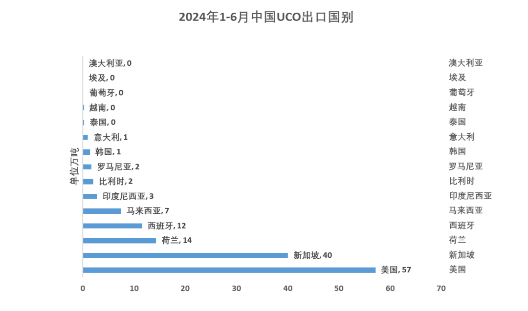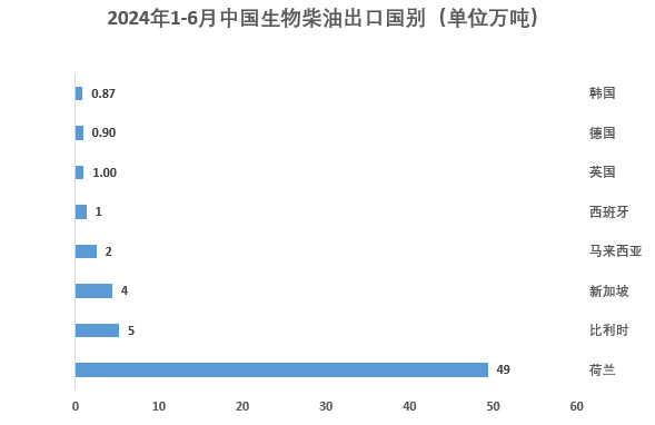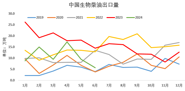 2024年1-6月份出口了140万吨,1-6月份累计同比增加67%,增量较大的区域主要是美国和新加坡。往欧盟出口了31万吨,占中国出口份额的22%。