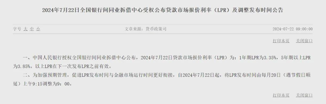 随即,报出的1年期和5年期以上LPR均同步下降10个基点,分别降至3.35%和3.85%。