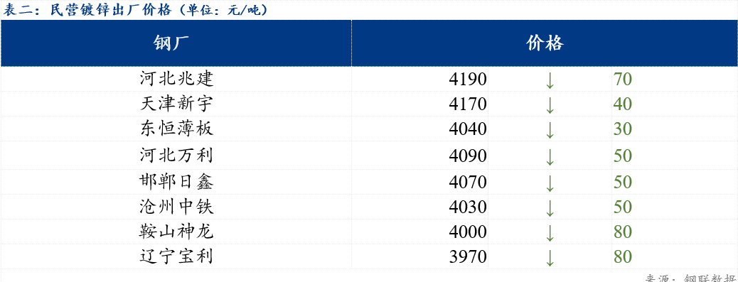 现北方地区民营镀锌板卷整体出厂价格在3970-4190元/吨。