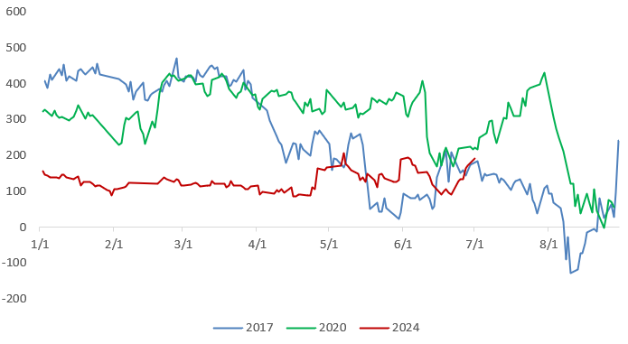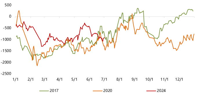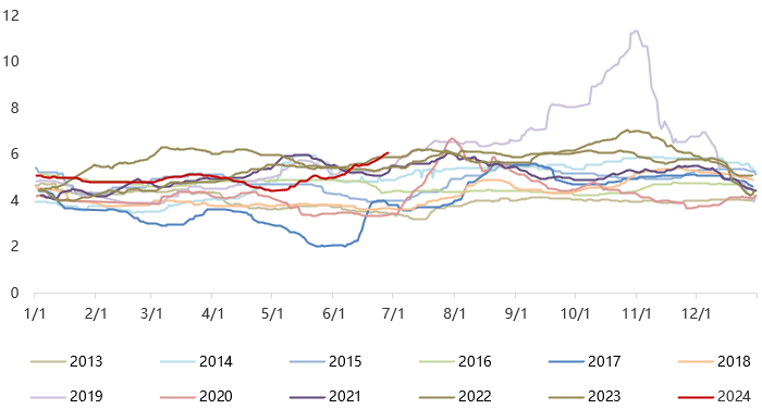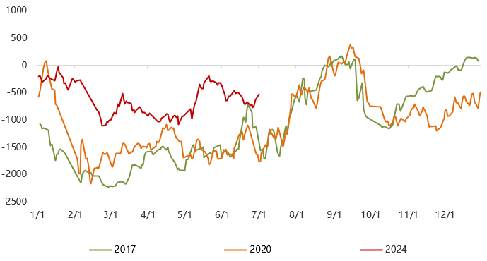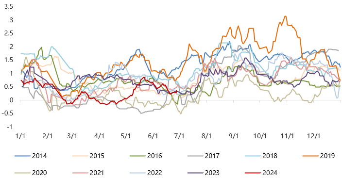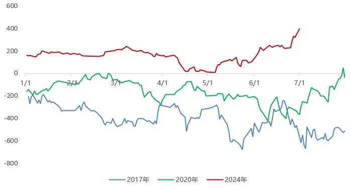 资金及贸易端的成规模介入对2024年的行情产生明显影响,低价做库存的行为较往年明显增多,进而导致现货每次跌至成本附近后即获得较强支撑,下半年继续关注隐性库存对市场价格的调节作用。