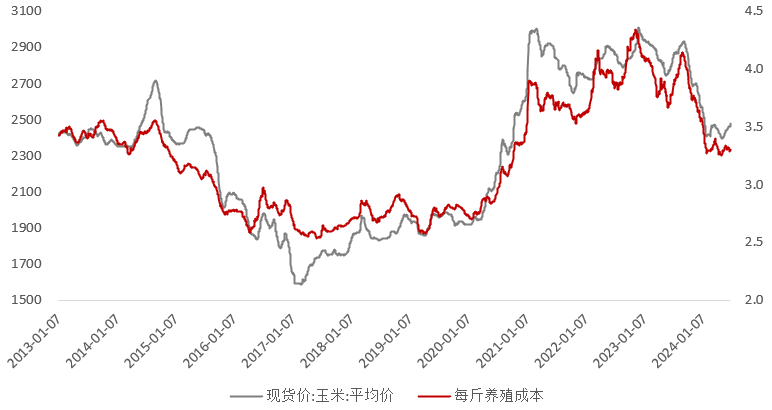 图2.8:玉米及养殖成本走势(元/吨、元/斤)