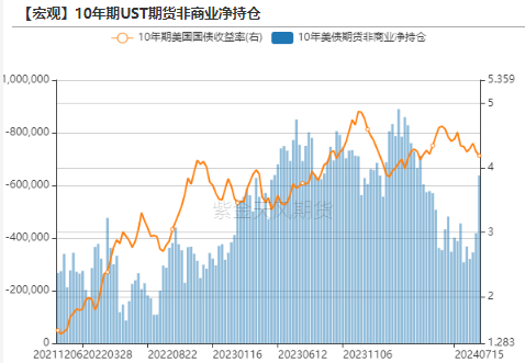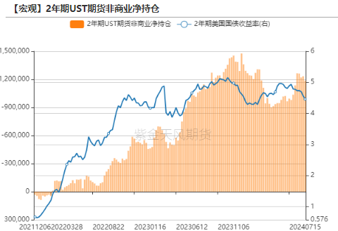 截止7.16的数据,美债利率持仓分化,2年期UST期货非商业净持仓空头减少47328手至1184987手;10年期UST期货非商业净持仓空头增加219582手至637486手。