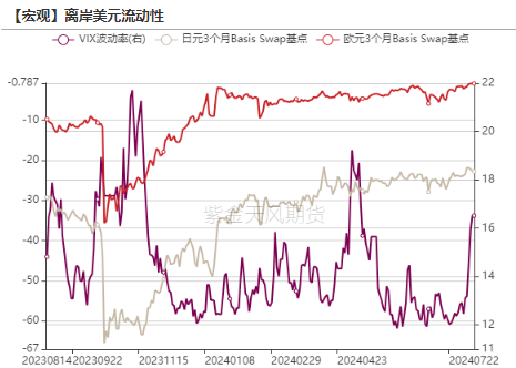 上周日元3个月Basis Swap与欧元3个月Basis Swap环比走高,离岸美元流动性融资成本有所降低。