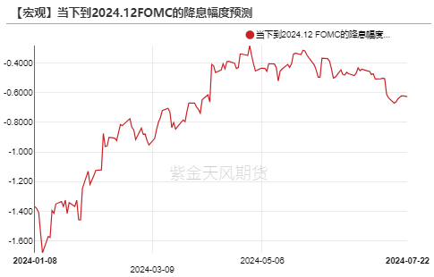 上周利率期货隐含的全年降息幅度小幅收敛至62.1bps,今年首次降息被定价在9月,12月时可能有1.5个25bps左右的降息幅度。