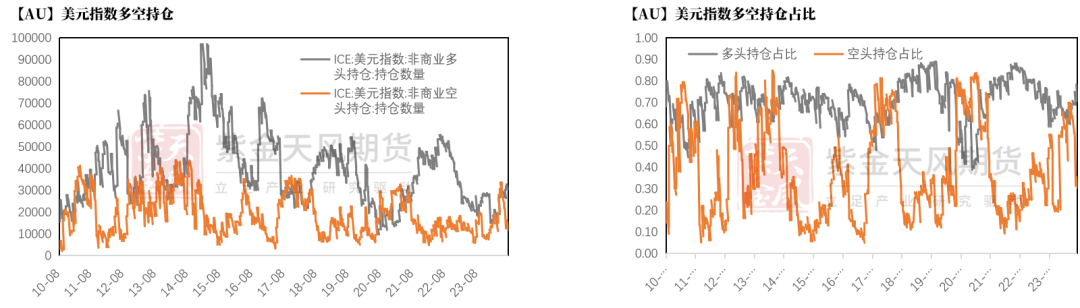 持仓占比方面,非商业多头持仓增加到60%附近,非商业空头持仓增加至11%附近。