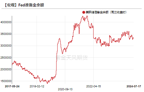 上周三美联储准备金余额为3.32万亿美元,较前一周持平。