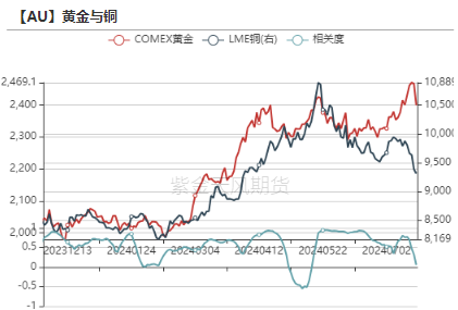 从滚动相关性的角度来看,黄金与铜、美元指数的相关性走低、与原油相关性走高。