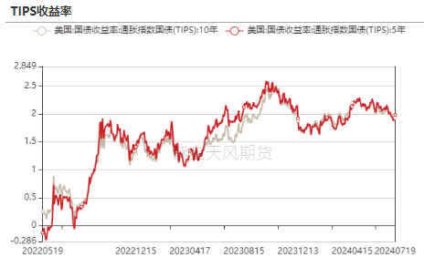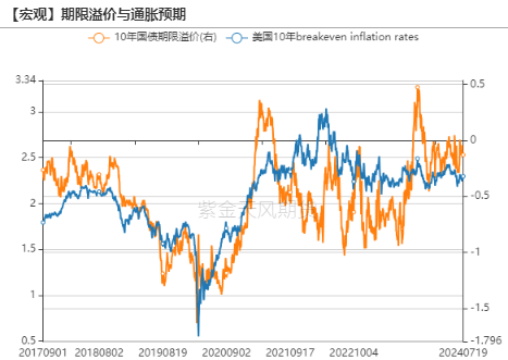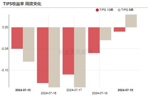 5年期和10年期TIPS收益率下行,5年期TIPS收益率于周五收于1.98%,较前周上行3bps;10年期TIPS收益率于周五收于1.93%,较前周下行1bp。
