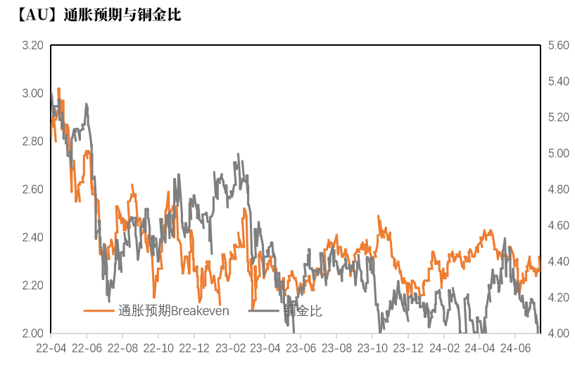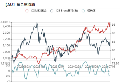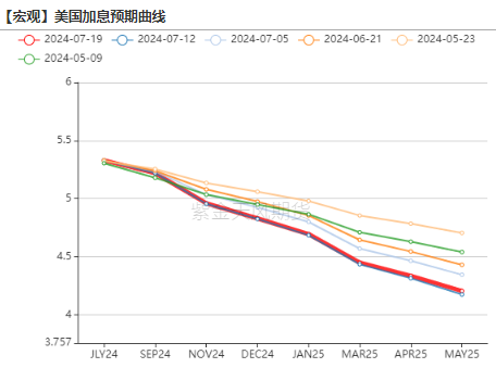 上周伦敦黄金价格创下新高后却并未站住脚跟,周三至周五跌幅超过3%,全周累计下跌0.42%至$2400.6/oz,交易的主线是降息预期从乐观到降温,说明当前市场认为全年2.7个25bps的降息定价不够理性,在降息预期的折返中带动金价回调。与此同时,美元指数小幅上行0.26%至104.4、10y UST上行4.8bps至4.24%。往后看,本周将公布二季度包括GDP在内的一系列经济数据以及6月PCE,不温不火的GDP与降温的PCE组合将激发有关“金发姑娘”的宏观叙事,其中3个月年化PCE读数更将低于联储的2%的目标,这恐怕又将使得短期内黄金价格小幅承压。