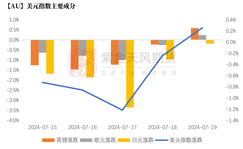 上周三美元兑日元剧烈贬值,美元兑日元单日下跌3.4%至156.4,市场推测是特朗普在彭博采访透露出弱美元的信息后,日本政府顺势当局干预日元贬值。美元兑欧元小幅升值,7月ECB的议息会议维持利率不变,官员鸽派地表示下次政策决定“完全开放”。