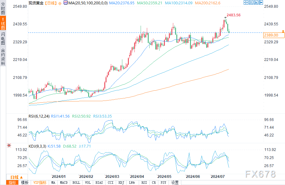 拜登退出后美元失去立足点,黄金弱势震荡失守2390