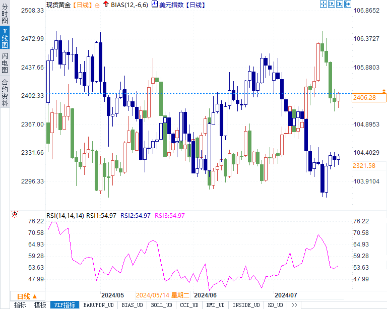 美元的疲软为金价提供了支撑。截止发稿,现货黄金上涨0.3%,至2,405美元附近,显示出市场对金价的稳定预期。然而,本周几乎没有重要的经济数据公布,这使得交易员们在周五美国6月个人消费支出(PCE)通胀数据公布前保持谨慎。