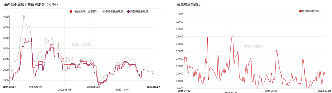 现货:中性焦煤市场观望情绪不减,线上竞拍方面流拍有增多趋势,且成交价格跌多涨少,坑口也有少数煤矿下调报价;蒙煤市场成交一般,价格稳中有降,蒙5#原煤报价小跌至1290-1320元/吨附近。