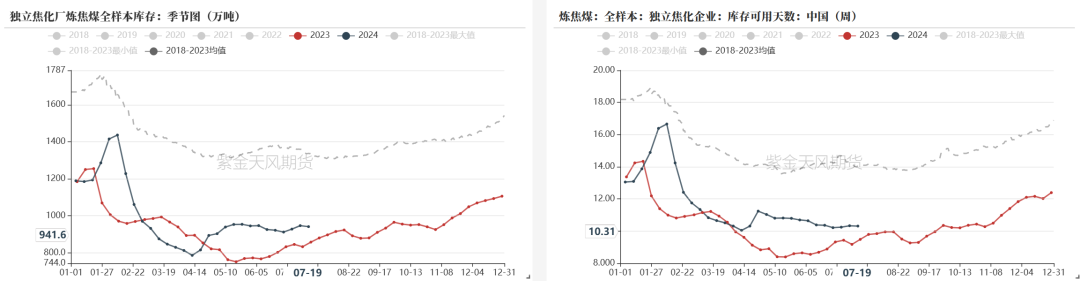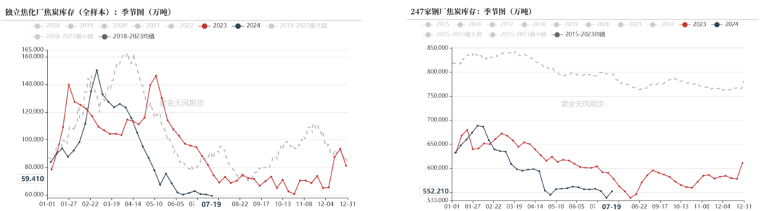 独立焦化厂全样本焦炭库存59.41万吨,周环比-1万吨;